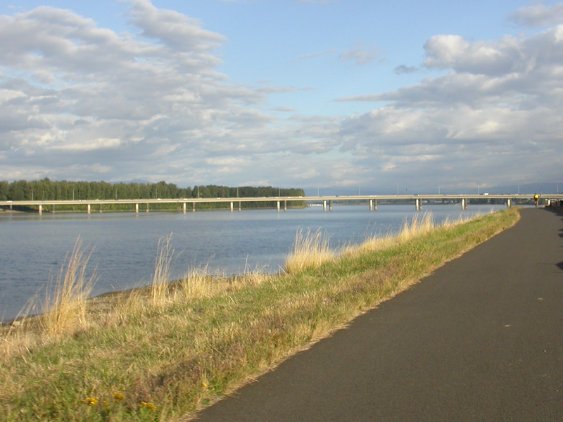 Riding along side the Columbia River on the bike